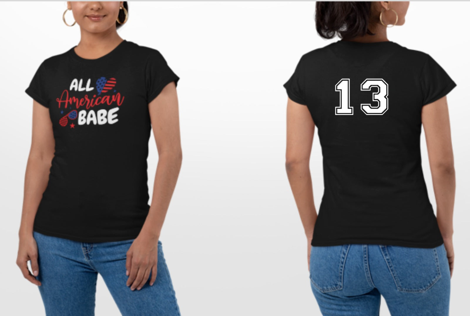 Show off your patriotic style with our All American Custom Tee! This comfy and stylish tee is perfect for those who love to celebrate the red, white, and blue in style. Made from soft, breathable cotton, it’s the ideal choice for a casual day out, BBQs, or any occasion that calls for a little extra USA pride. With a trendy design that blends classic Americana vibes and a chic fit, this shirt is perfect for every proud All-American Babe. Pair it with your favorite jeans, shorts, or joggers for an effortlessly cool look!